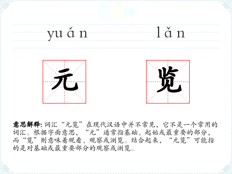 "元览"的意思解释、元览是什么意思由翻译网汉语词典查词提供。