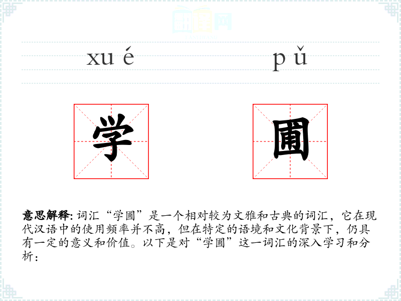 词汇“学圃”是一个相对较为文雅和古典的词汇,它在现代汉语中的使用频率并不高,但在特定的语境和文化背景下,仍具有一定的意义和价值。以下是对“学圃”这一词汇的深入学*和分析: