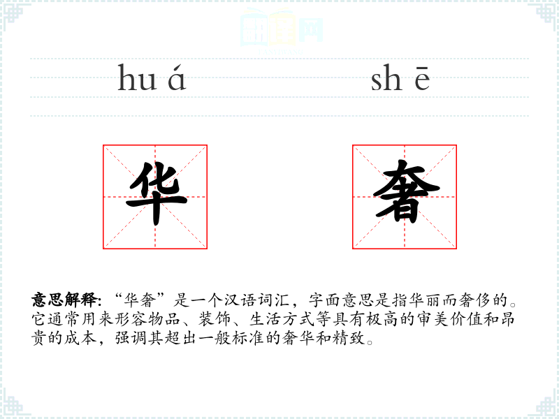 “华奢”是一个汉语词汇,字面意思是指华丽而奢侈的。它通常用来形容物品、装饰、生活方式等具有极高的审美价值和昂贵的成本,强调其超出一般标准的奢华和精致。