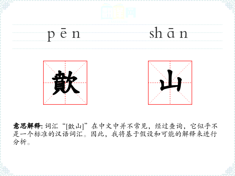 词汇“[歕山]”在中文中并不常见,经过查询,它似乎不是一个标准的汉语词汇。因此,我将基于假设和可能的解释来进行分析。