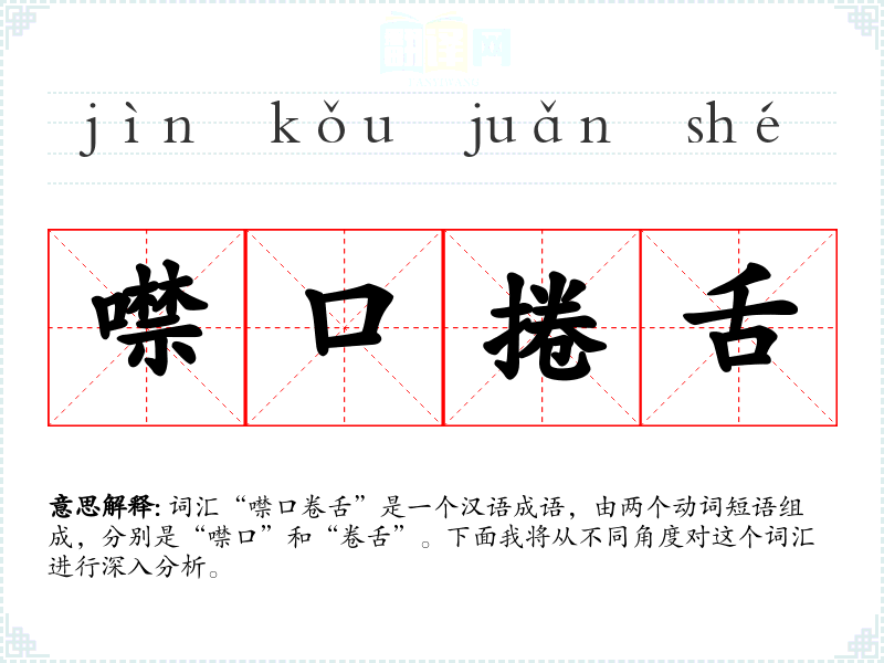 词汇“噤口卷舌”是一个汉语成语,由两个动词短语组成,分别是“噤口”和“卷舌”。下面我将从不同角度对这个词汇进行深入分析。
