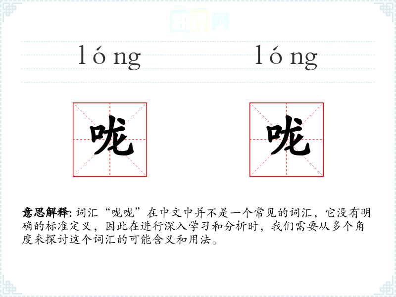 词汇“咙咙”在中文中并不是一个常见的词汇,它没有明确的标准定义,因此在进行深入学习和分析时,我们需要从多个角度来探讨这个词汇的可能含义和用法。