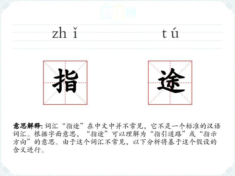 词汇“指途”在中文中并不常见,它不是一个标准的汉语词汇。根据字面意思,“指途”可以理解为“指引道路”或“指示方向”的意思。由于这个词汇不常见,以下分析将基于这个假设的含义进行。