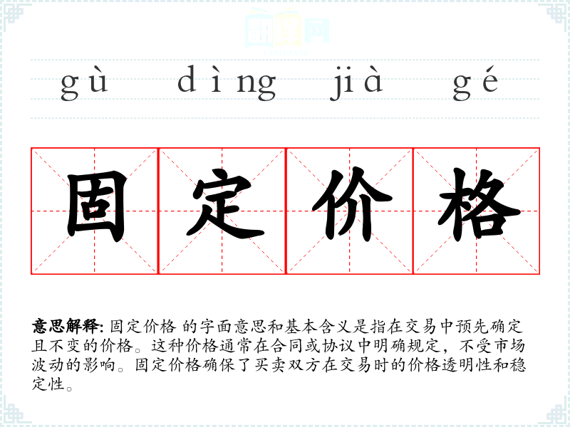“固定价格”这个词汇在英语中对应为 "fixed price",其词源直接来源于“fixed”(固定的)和“price”(价格)。在经济学和商业领域,这个概念自工业革命以来就一直是重要的交易方式之一。