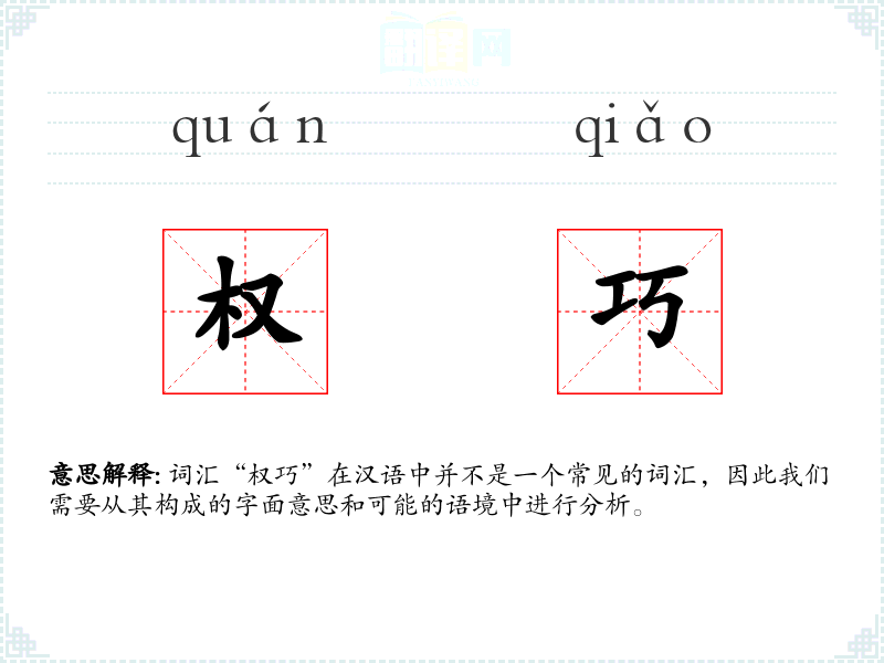 词汇“权巧”在汉语中并不是一个常见的词汇,因此我们需要从其构成的字面意思和可能的语境中进行分析。