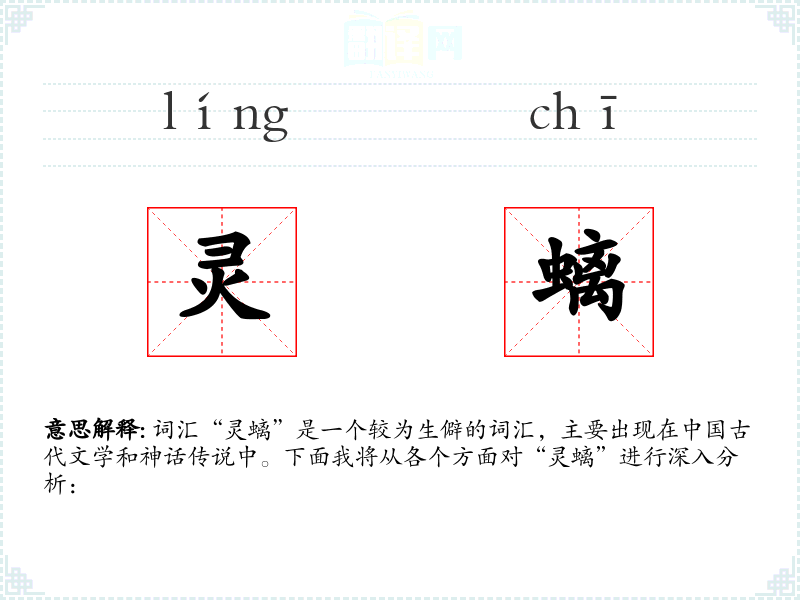 词汇“灵螭”是一个较为生僻的词汇,主要出现在**古代文学和神话传说中。下面我将从各个方面对“灵螭”进行深入分析: