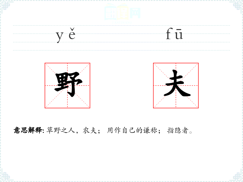 草野之人,农夫; 用作自己的谦称; 指隐者。