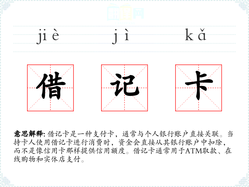 "借记卡"的意思解释、借记卡是什么意思由翻译网汉语词典查词提供。