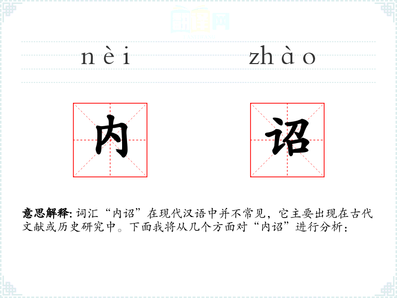 词汇“内诏”在现代汉语中并不常见,它主要出现在古代文献或历史研究中。下面我将从几个方面对“内诏”进行分析: