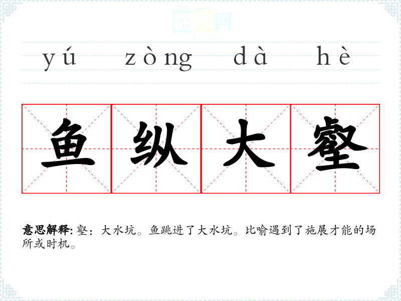 壑:大水坑。鱼跳进了大水坑。比喻遇到了施展才能的场所或时机。