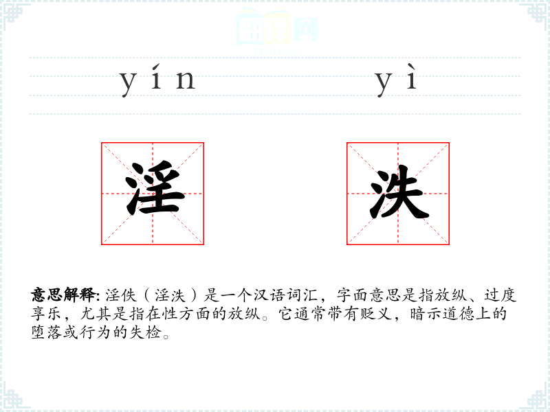 “淫佚”一词源自古代汉语,其字面组合“淫”指过度,“佚”指放纵。随着时间的推移,这个词的含义逐渐固定在性放纵的负面意义上。