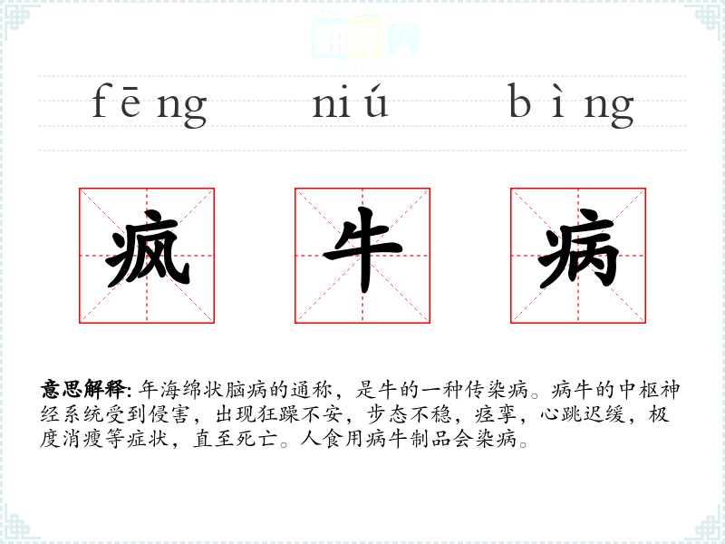疯牛病的分字解释