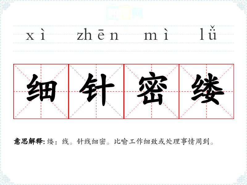 缕:线。针线细密。比喻工作细致或处理事情周到。