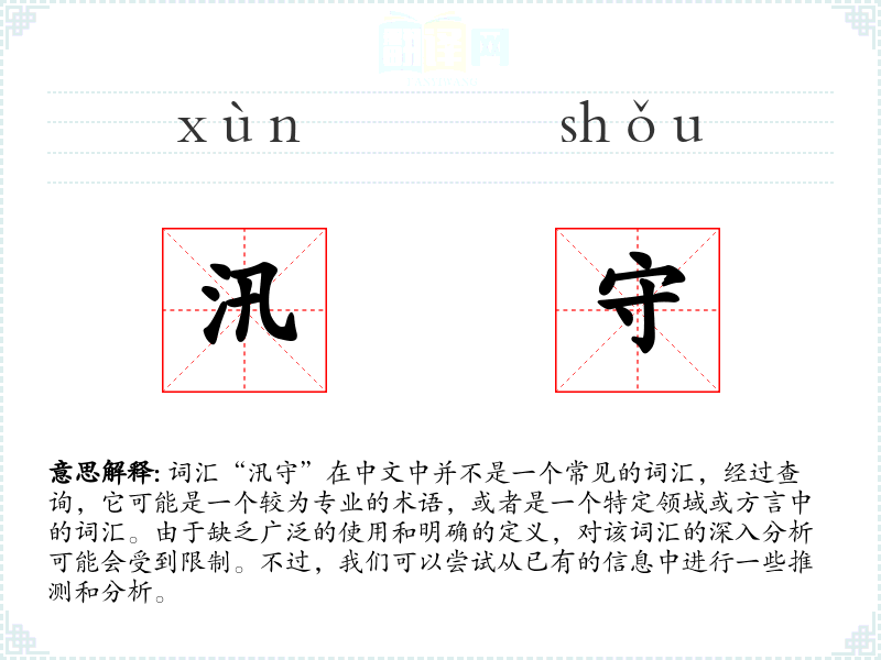 词汇“汛守”在中文中并不是一个常见的词汇,经过查询,它可能是一个较为专业的术语,或者是一个特定领域或方言中的词汇。由于缺乏广泛的使用和明确的定义,对该词汇的深入分析可能会受到限制。不过,我们可以尝试从已有的信息中进行一些推测和分析。