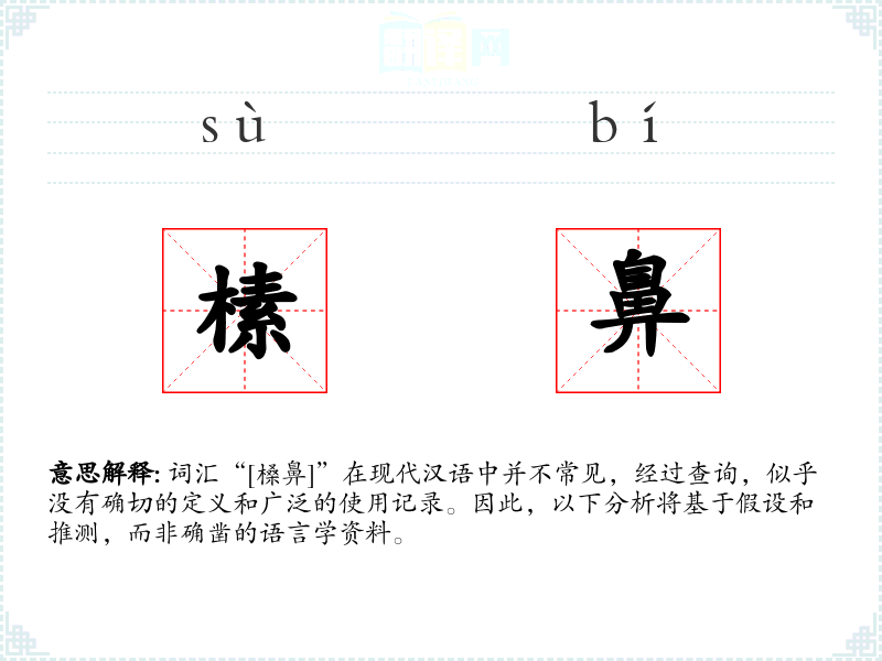 词汇“[槡鼻]”在现代汉语中并不常见,经过查询,似乎没有确切的定义和广泛的使用记录。因此,以下分析将基于假设和推测,而非确凿的语言学资料。