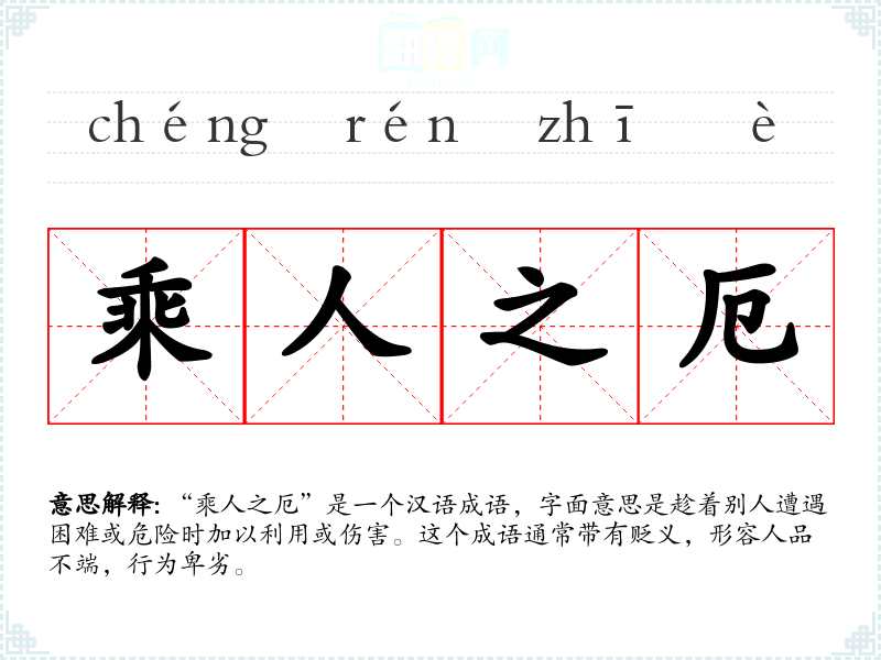 “乘人之厄”是一个汉语成语,字面意思是趁着别人遭遇困难或危险时加以利用或伤害。这个成语通常带有贬义,形容人品不端,行为卑劣。