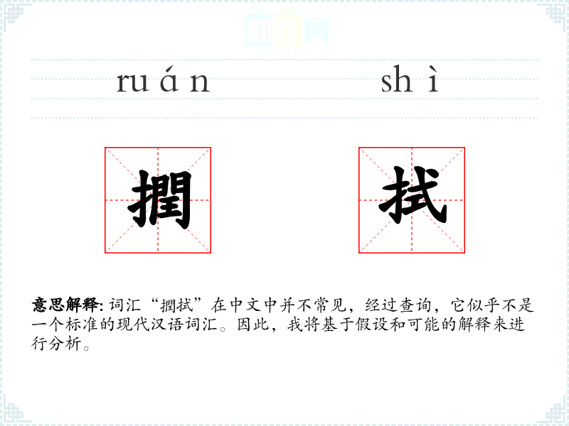 词汇“撋拭”在中文中并不常见,经过查询,它似乎不是一个标准的现代汉语词汇。因此,我将基于假设和可能的解释来进行分析。