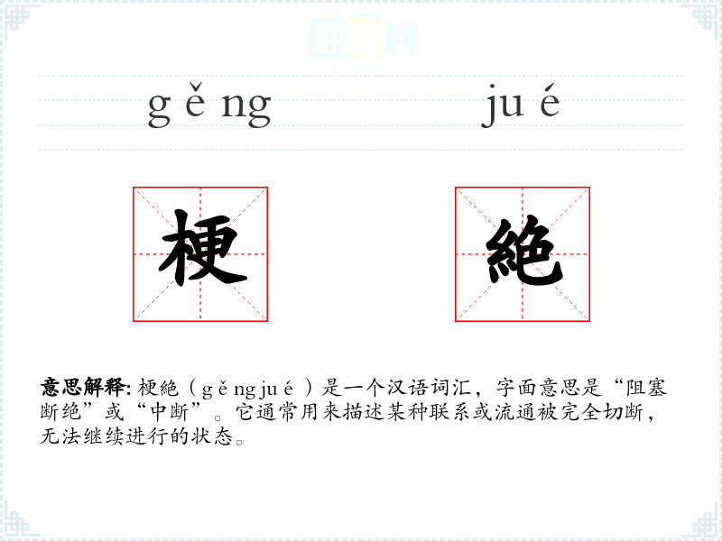"梗絶"的意思解释、梗絶是什么意思由翻译网汉语词典查词提供。
