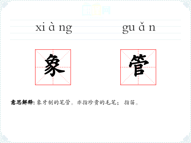 象牙制的笔管。亦指珍贵的毛笔; 指笛。