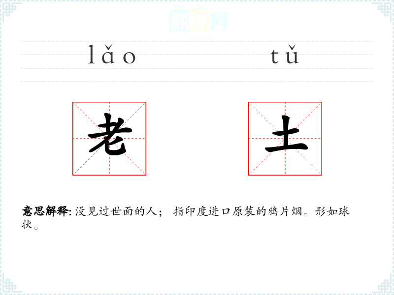 没见过世面的人; 指印度进口原装的鸦片烟。形如球状。
