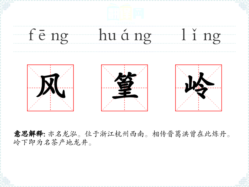 亦名龙泓。位于浙江杭州西南。相传晋葛洪曾在此炼丹。岭下即为名茶产地龙井。
