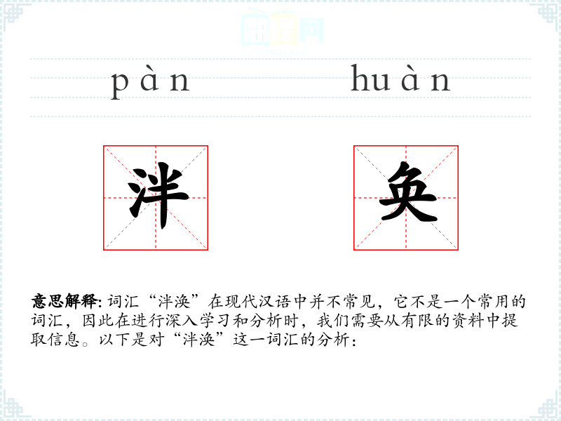 词汇“泮涣”在现代汉语中并不常见,它不是一个常用的词汇,因此在进行深入学习和分析时,我们需要从有限的资料中提取信息。以下是对“泮涣”这一词汇的分析: