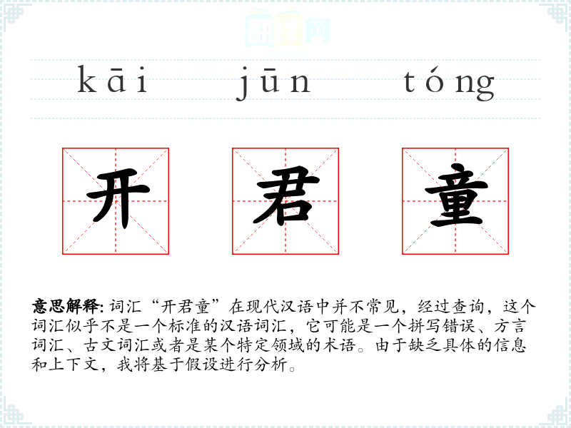 由于“开君童”不是一个标准的现代汉语词汇,我们无法探讨它带来的视觉和听觉联想。