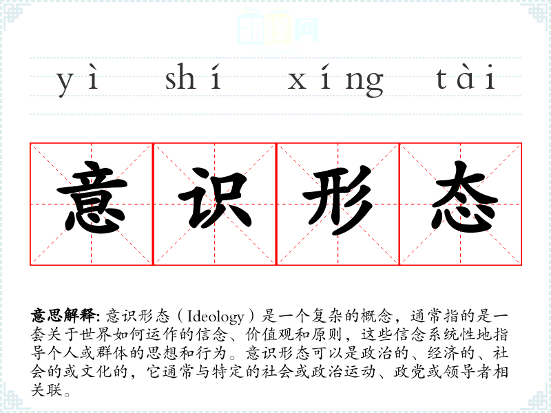 "意识形态"的意思解释、意识形态是什么意思由翻译网汉语词典查词提供。