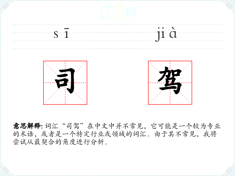 词汇“司驾”在中文中并不常见,它可能是一个较为专业的术语,或者是一个特定行业或领域的词汇。由于其不常见,我将尝试从最契合的角度进行分析。
