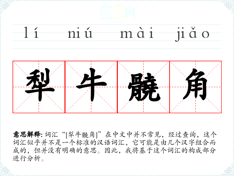 词汇“[犁牛髐角]”在中文中并不常见,经过查询,这个词汇似乎并不是一个标准的汉语词汇,它可能是由几个汉字组合而成的,但并没有明确的意思。因此,我将基于这个词汇的构成部分进行分析。