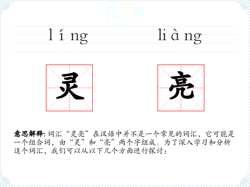 词汇“灵亮”在汉语中并不是一个常见的词汇,它可能是一个组合词,由“灵”和“亮”两个字组成。为了深入学习和分析这个词汇,我们可以从以下几个方面进行探讨: