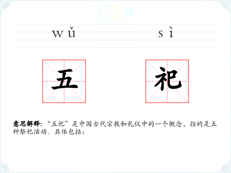 “五祀”是古代和礼仪中的一个概念,指的是五种祭祀活动。具体包括: