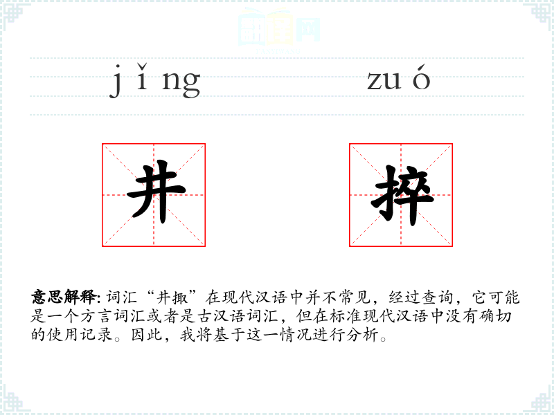 由于“井掫”在现代汉语中不常见,无法给出确切的基本定义。它可能是一个地方方言词汇,或者是古代文献中的用词,但在现代标准汉语中没有明确的含义。