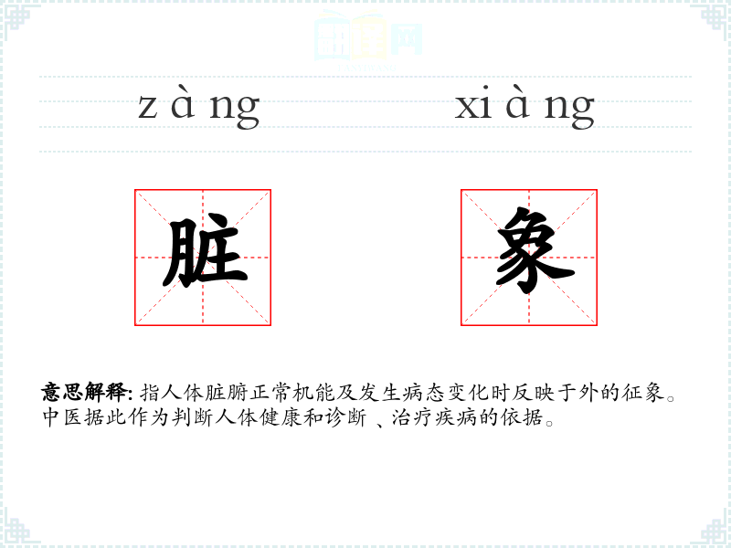 指人体脏腑正常机能及发生病态变化时反映于外的征象。中医据此作为判断人体健康和诊断﹑治疗疾病的依据。