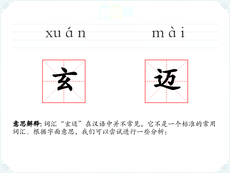词汇“玄迈”在汉语中并不常见,它不是一个标准的常用词汇。根据字面意思,我们可以尝试进行一些分析: