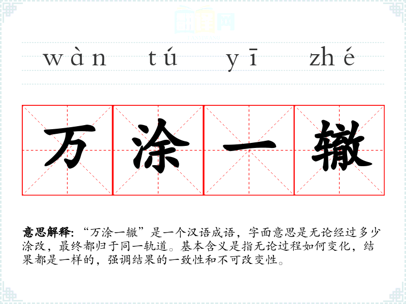 “万涂一辙”这个成语的词源较为模糊,但它反映了汉语中对于结果一致性的强调。随着时间的推移,这个成语的使用逐渐固定,成为表达不可改变结果的常用语。