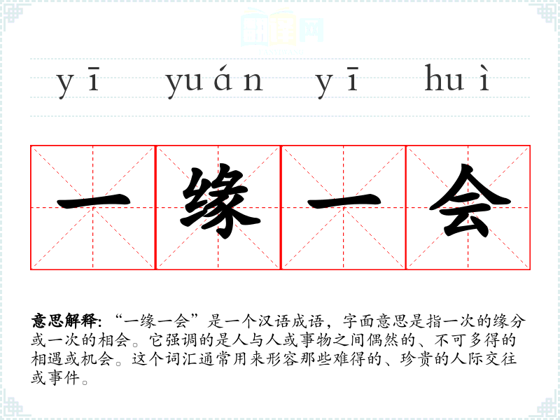 - 反义词:“常态”、“必然”等,这些词汇与“一缘一会”形成对比,强调的是规律性和可预测性。
