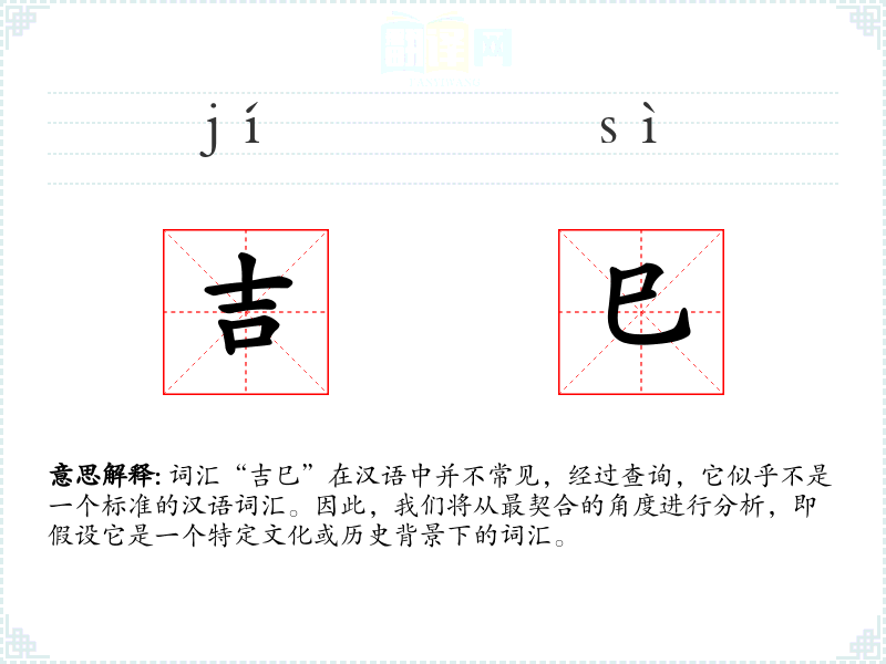 由于“吉巳”不是一个常见的汉语词汇,我们无法提供一个确切的基本定义。如果它来自某个特定的文化或历史背景,那么它的含义可能与那个背景紧密相关。
