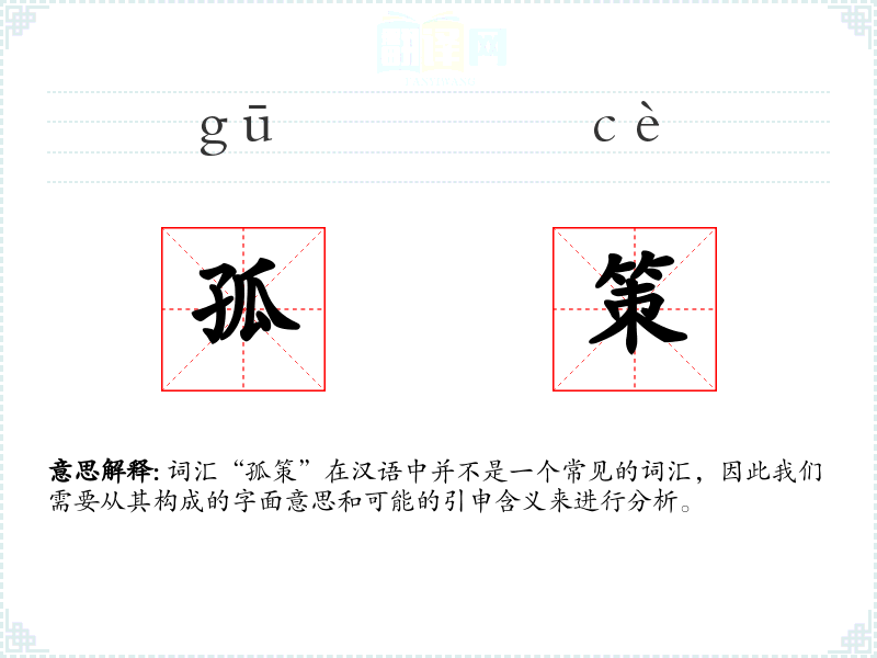 词汇“孤策”在汉语中并不是一个常见的词汇,因此我们需要从其构成的字面意思和可能的引申含义来进行分析。