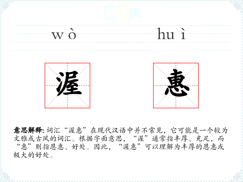 - 词源:“渥”和“惠”都是古代汉语词汇,具有悠久的历史。