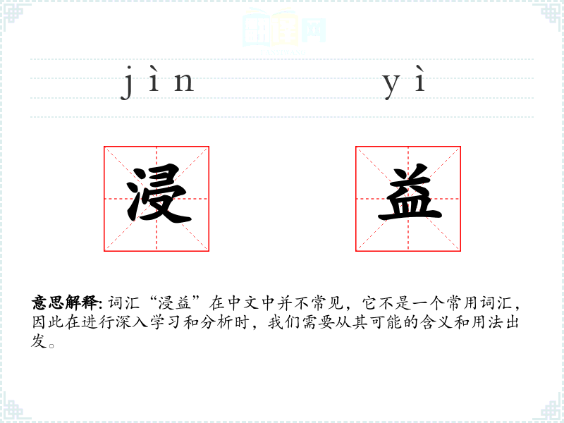 词汇“浸益”在中文中并不常见,它不是一个常用词汇,因此在进行深入学习和分析时,我们需要从其可能的含义和用法出发。