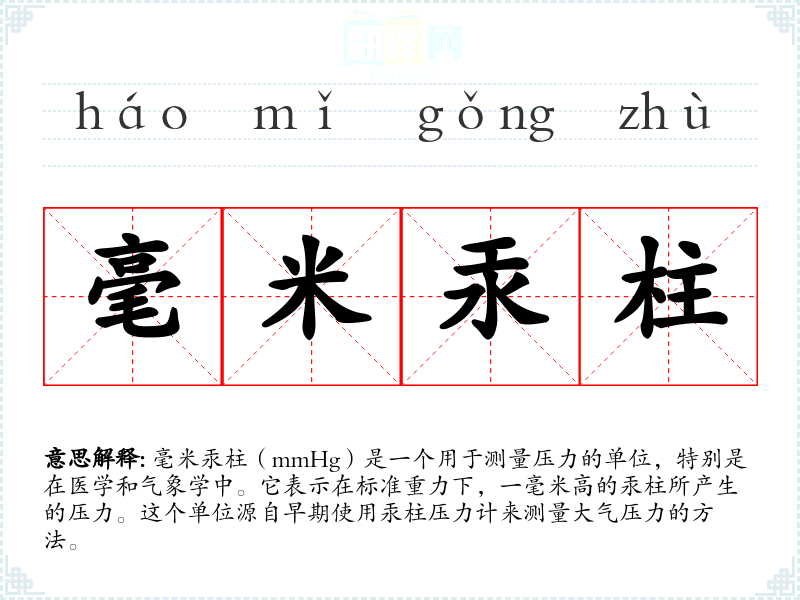 "毫米汞柱"的意思解释、毫米汞柱是什么意思由翻译网汉语词典查词提供。