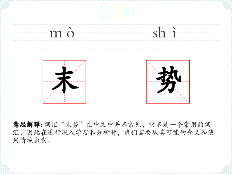 词汇“末势”在中文中并不常见,它不是一个常用的词汇,因此在进行深入学*和分析时,我们需要从其可能的含义和使用情境出发。
