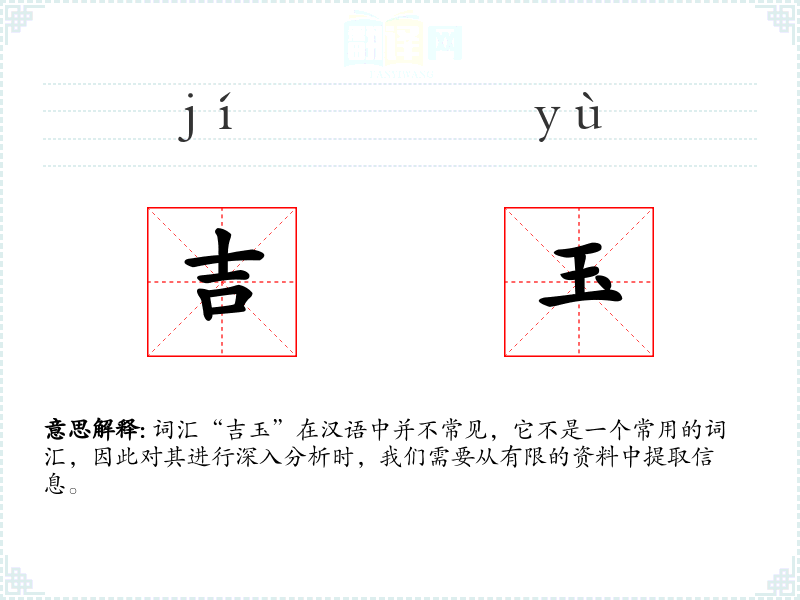 词汇“吉玉”在汉语中并不常见,它不是一个常用的词汇,因此对其进行深入分析时,我们需要从有限的资料中提取信息。