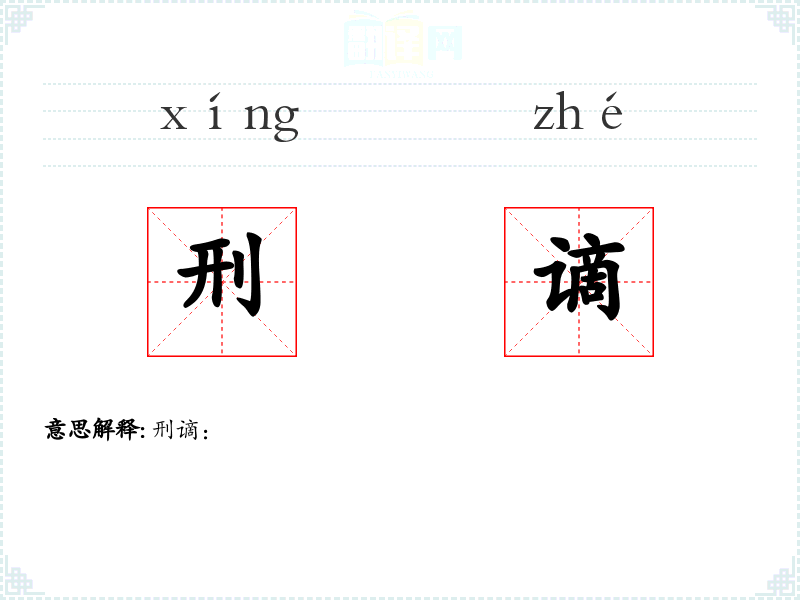 - 词源:刑谪一词源自古代汉语,由“刑”(惩罚)和“谪”(贬谪)两个字组成。