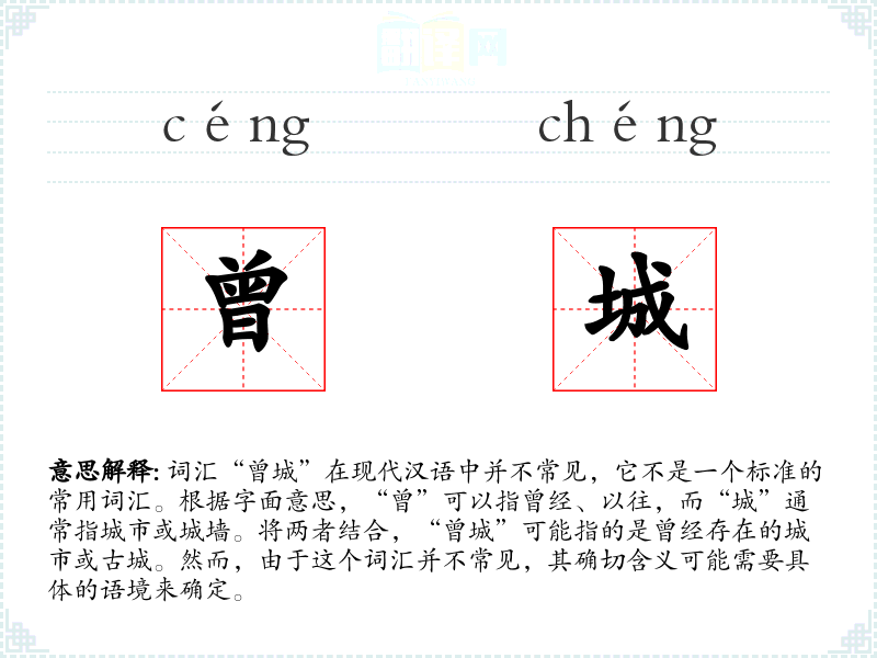 "曾城"的意思解释、曾城是什么意思由翻译网汉语词典查词提供。