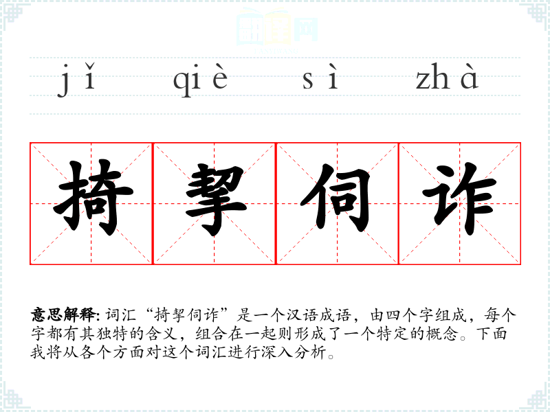 词汇“掎挈伺诈”是一个汉语成语,由四个字组成,每个字都有其独特的含义,组合在一起则形成了一个特定的概念。下面我将从各个方面对这个词汇进行深入分析。