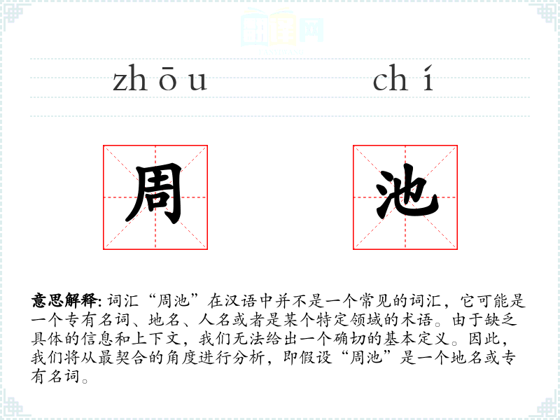 - 反义词:(由于“周池”不是一个常用词汇,反义词可能不适用)