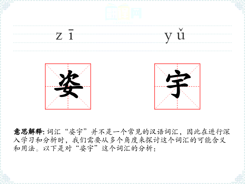 词汇“姿宇”并不是一个常见的汉语词汇,因此在进行深入学习和分析时,我们需要从多个角度来探讨这个词汇的可能含义和用法。以下是对“姿宇”这个词汇的分析:
