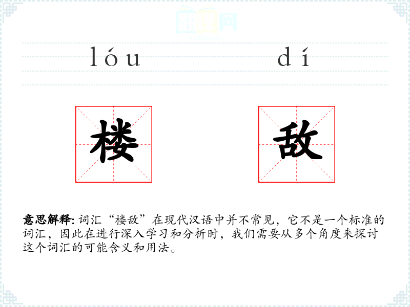 词汇“楼敌”在现代汉语中并不常见,它不是一个标准的词汇,因此在进行深入学习和分析时,我们需要从多个角度来探讨这个词汇的可能含义和用法。